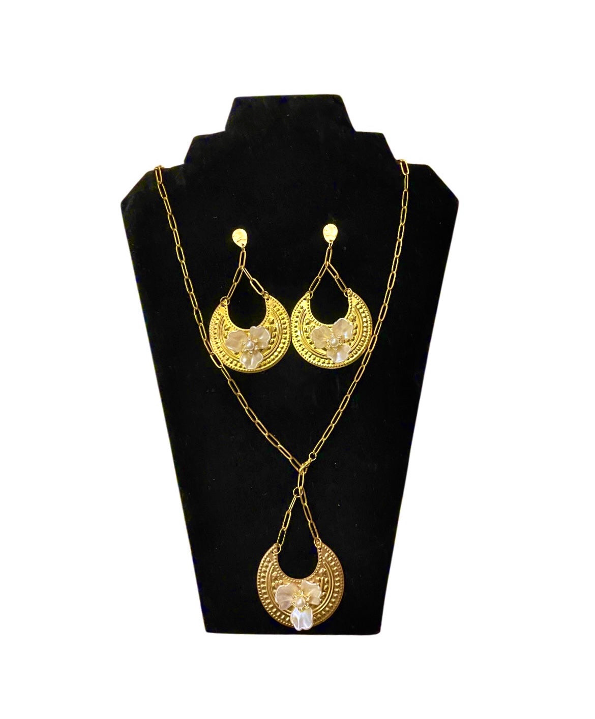 A beautiful set made with authentic Sudanese crescents and a hand-made enamel flower.